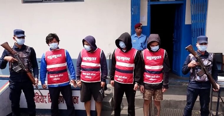 काठमाडौँ । ललितपुरको ढोलाहिटीमा चक्कु प्रहारबाट दुई जनाको मृत्यु भएको घटनामा संलग्न भएका चारजनालाई प्रहरीले सार्वजनिक गरेको छ । जिल्ला प्रहरी परिसर ललितपुरले मंगलबार पत्रकार सम्मेलन गरी घटनामा संलग्न चार जनालाई सार्वजनिक गरेको हो ।