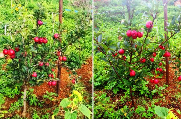 परीक्षणका लागि लगाइएको स्याउ तीन वर्षमै फलेपछि निसीखोलाका किसान उत्साहित