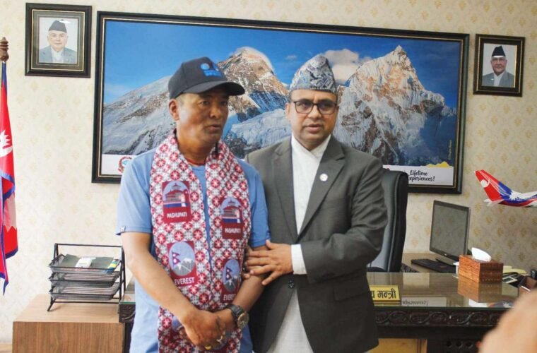 पर्यटनमन्त्रीद्वारा कीर्तिमानी आरोही पासाङ नामगेल शेर्पाको स्वागत
