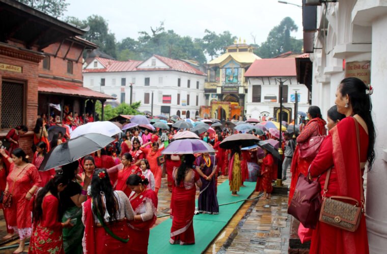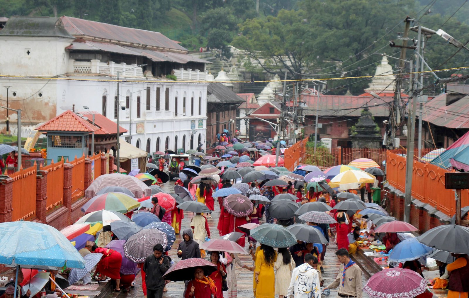 पशुपतिनाथ मन्दिर परिसरमा छाता ओढ्दै पूजा गर्नेहरुको घुइँचो देखिन्छ । भाद्र शुक्ल तृतीयाका दिनमा मनाइने हरितालिका तीजको दिन व्रतालुले शिव–पार्वतीको विशेष पूजा आराधना गर्दछन् ।
