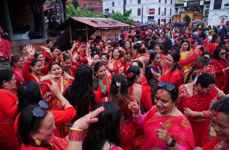 काठमाडौँ । भाद्र शुक्ल तृतीयाका दिनमा मनाइने तीज पर्वका अवसरमा आज बिहानैदेखि पशुपतिनाथ मन्दिरमा व्रतालुहरू पानीको परवाह नगरी नाचगान गर्दै रमाइलो गरिरहेका छन् ।