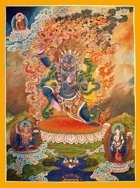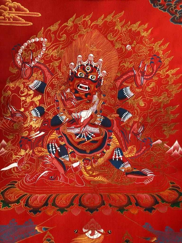 ‘महाकाला’ (संस्कृतमा ‘महाकाल’) ले ‘महान कालो’ को अर्थ दिन्छ । यसका षड्भुज, चतुर्भुज, श्वेतरूप आदि धेरै अवतार छन्। यो परम्परा प्राचीन छ। महाकाला (महाकाल) अवलोकितेश्वरको क्रोधित रूप हुन्, जो शून्यताको देवता, ब्रह्माण्डको देवता हुन् र सबै अँध्यारो र अशुभ शक्तिहरूलाई दमन गर्छन् । बुद्धको यस क्रोधित रूपले घर, जीवन र साधनामा सुरक्षा, शक्ति र निर्भयता प्रदान गर्छ, जसले मानिसहरूलाई जीवन, कर्म र आध्यात्मिक यात्रामा सबै बाधाहरू पार गर्न सहयोग गर्छ।