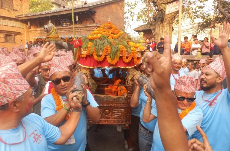 काठमाडौँ । घोडे जात्राका अवसरमा ललितपुरस्थित चामुण्डा माई र बालकुमारी माई देवीलाई खटमा राखेर टोल टोलमा घुमाइ एकापसमा मिलन गराएर जात्रा मनाइएको छ । परम्पराअनुसार मंगलबजार क्षेत्रमा पुगेपछि दुवै देवीलाई मिलन गराई पुन:आफ्नै मन्दिरमा राखिने गरिएको छ ।