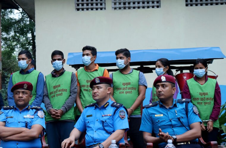उक्त घटनामा मोरङको पथरी शनिश्चरे नगरपालिका–३ का २९ वर्षीय ढकेन्द्र बुढाथोकी, २५ वर्षीया सृष्टि बुढाथोकी र ४० वर्षीय केशवराज दाहाल, पाँचथरको मिक्लाजुङ गाउँपालिका–७ का ३६ वर्षीय योगेन्द्र गौतम र २८ वर्षीय डेनु गौतमलाई पक्राउ गरिएको छ । भारतको आसाम तेजपुरका ३५ वर्षीय राजु थापामगर भने फरार रहेका छन् ।