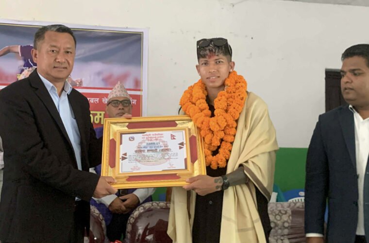 नेपाली महिला फुटबल टिमकी कप्तान साम्बा गृह जिल्लामा सम्मानित