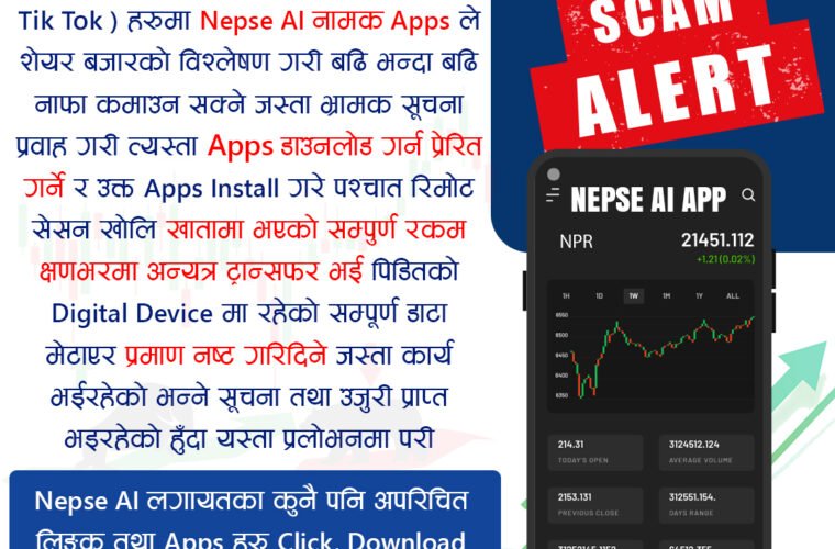 सो घटनाले सामाजिक सञ्जालमा आउने जुनसुकै लिङ्क खोल्न नहुने पनि सचेत गराएको छ । नेपाल प्रहरीका अनुसार पछिल्ला पटक धितोपत्र बजारको कारोबारका बारेमा जानकारी दिने नाममा ठगी गरिएको पाइएको छ ।
