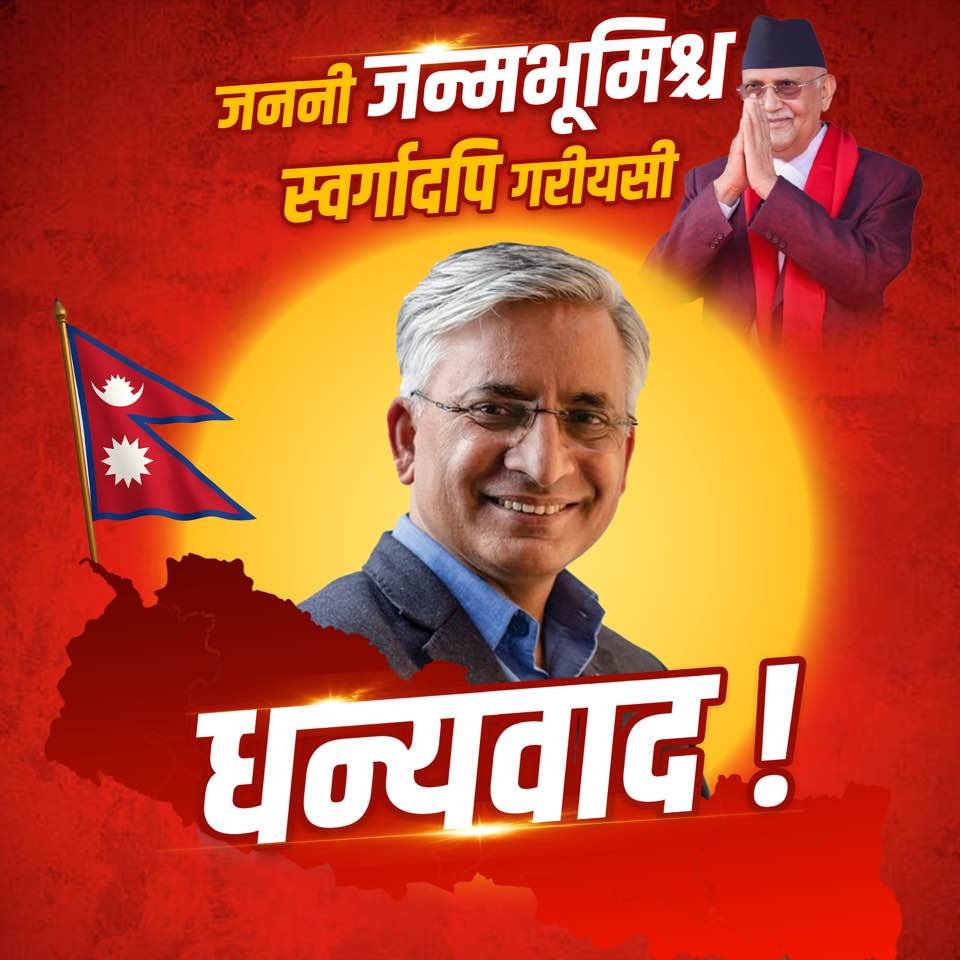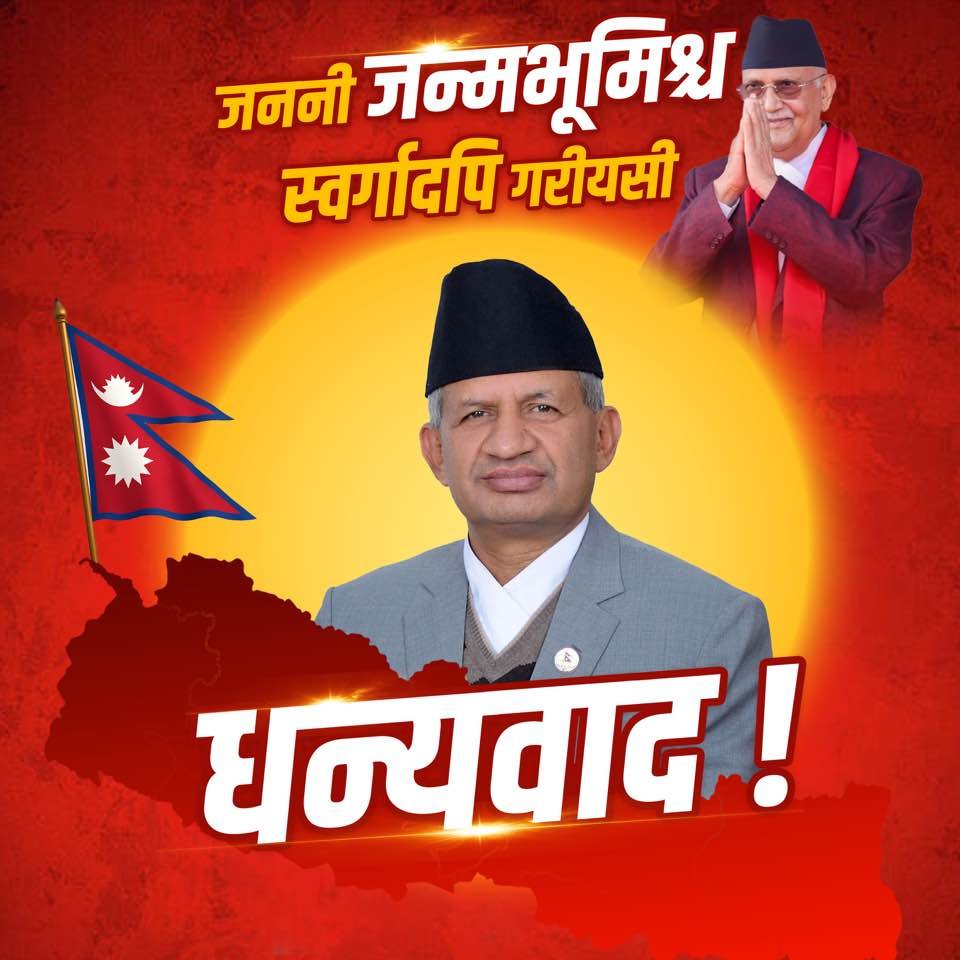 प्रधानमन्त्री ओलीले लिपुलेक सम्झौताप्रति नेपालको स्पष्ट अडान राखेको भन्दै एमालेले सामाजिक संजालमा धन्यवाद अभियान चलाएको हो । आइतबार बिहान प्रधानमन्त्री ओलीले आफ्नो तस्बिरमा नेपाली झण्डा र नेपालको नक्सा राखेर सामाजिक संजालमा ‘जननी जन्मभूमिश्च स्वर्गादपि गरीयसी ..जय जय – नेपाल !’ पोष्ट गरेपछि एमाले नेताहरुले धन्यवाद अभियान नै चलाएका छन् ।