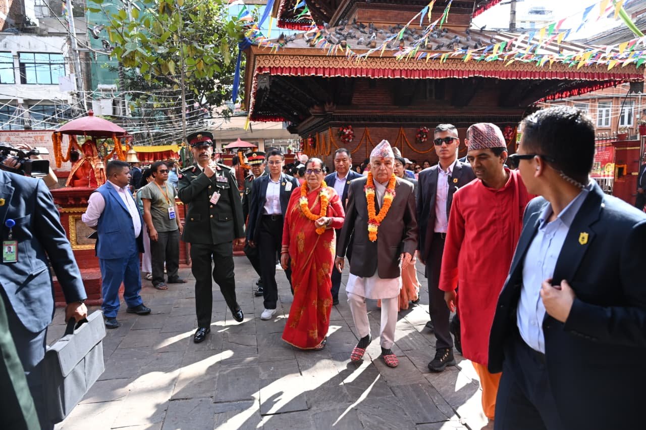 काठमाडौं । राष्ट्रपति रामचन्द्र पौडेलले काठमाडौं उपत्यकामा रहेको महत्वपूर्ण शक्तिपीठ मध्येको नक्साल भगवतीको दर्शन गरेका छन् । महाअषटमीका अवसरमा मंगलबार राष्ट्रपति पौडेलले काठमाडौंको नक्साल भगवतीमा प्रथम महिला सविता पौडेल सहित पुगेर दर्शन गरेका हुन् ।