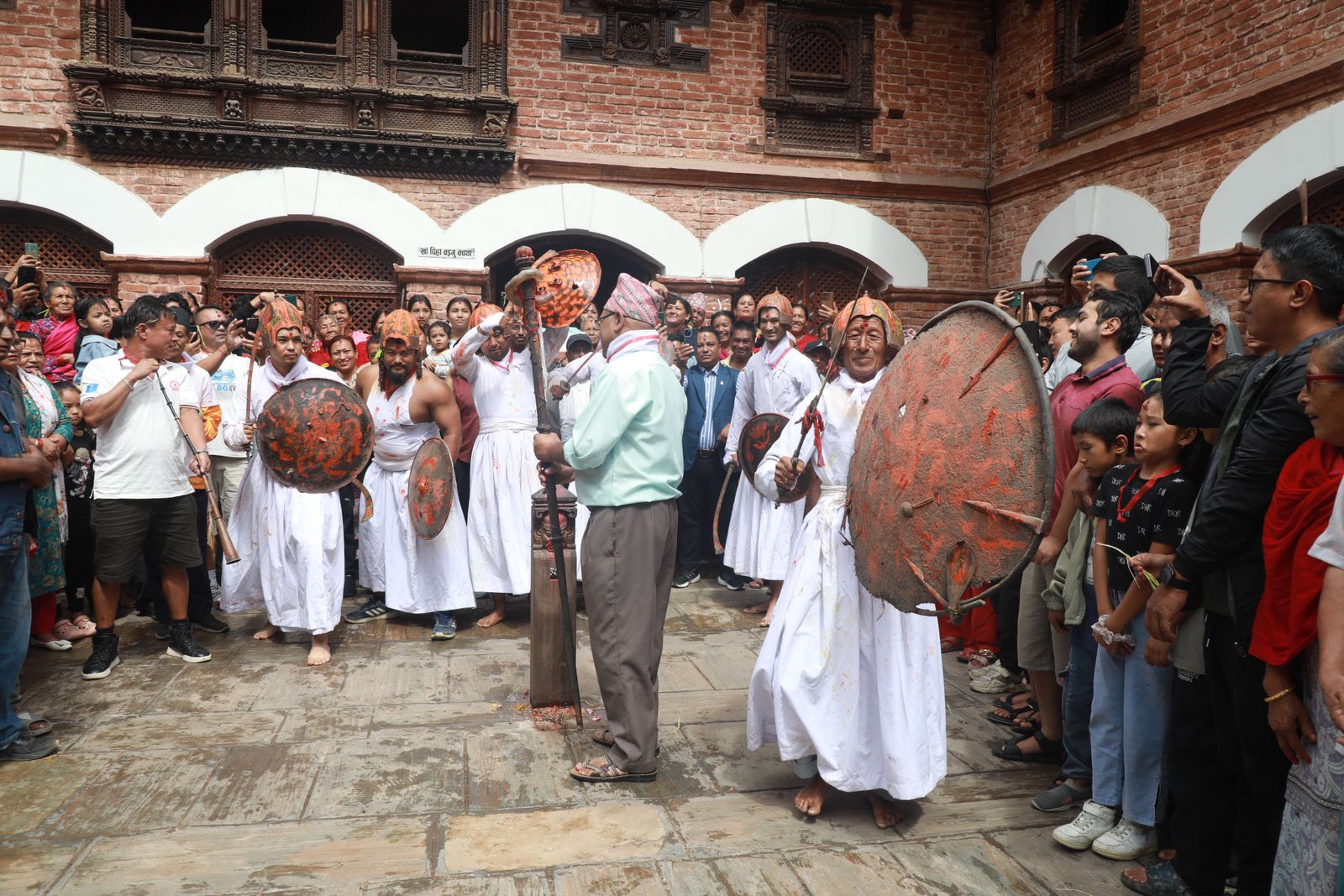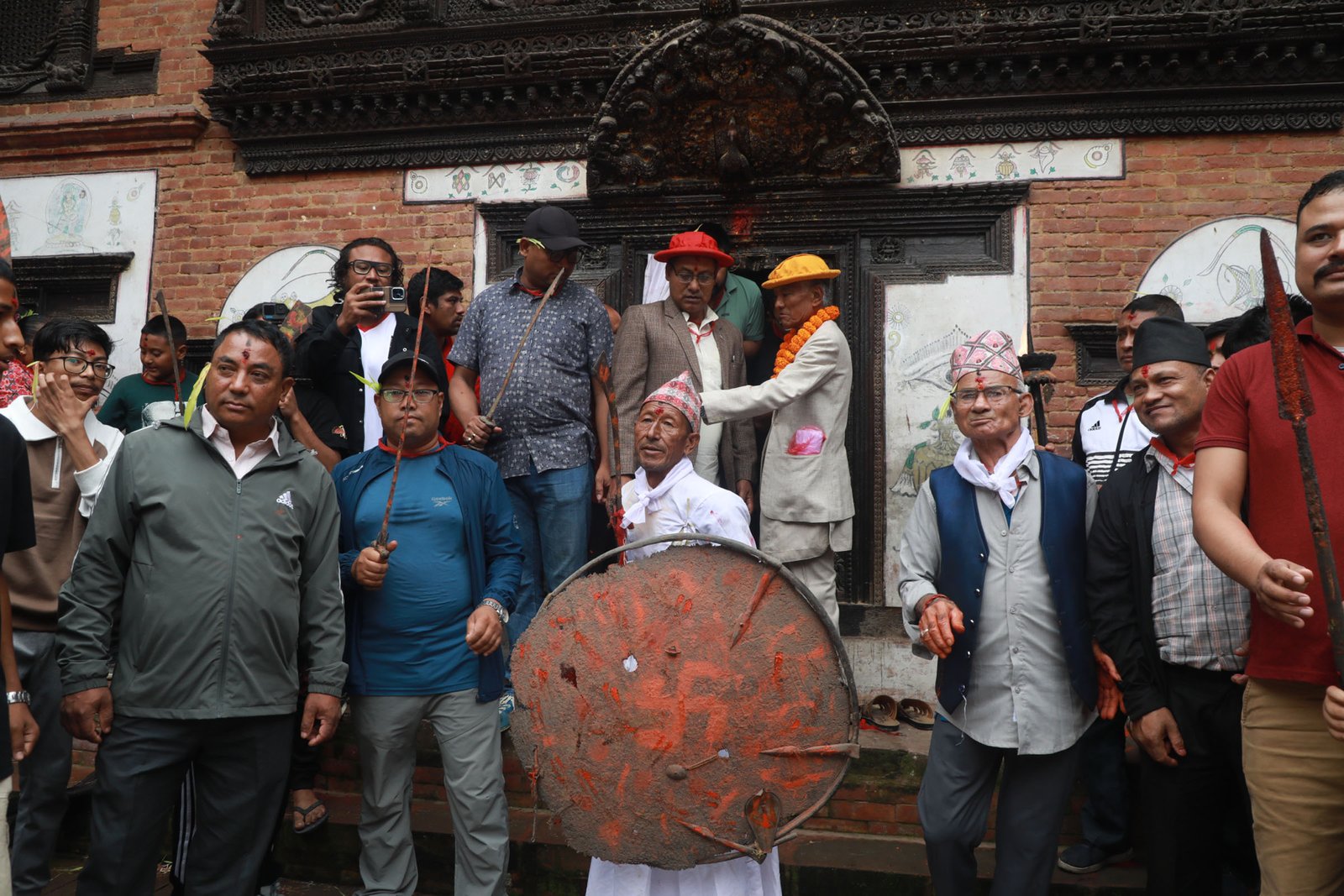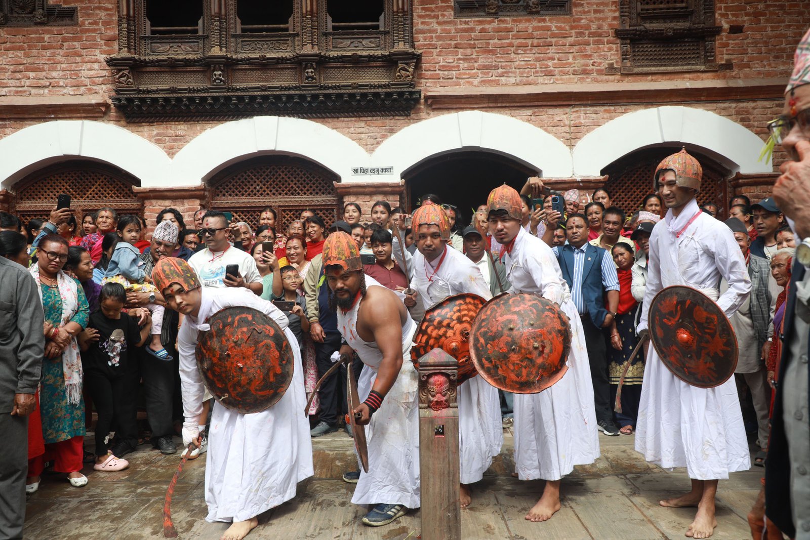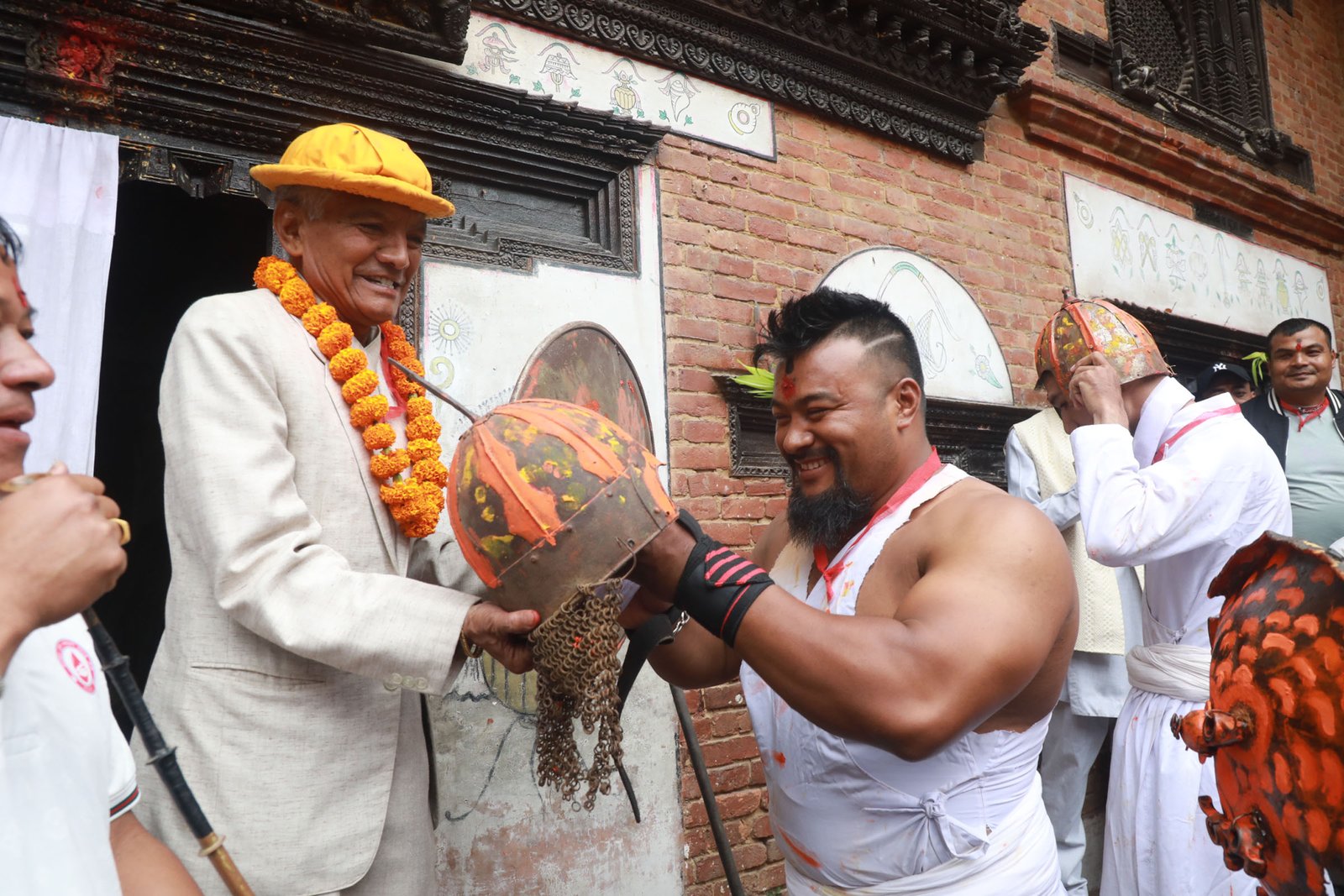 दरबारबाट पमा नायो (प्रधान नाइके)को नेतृत्वमा मल्लकालीन सिपाहीको भेषमा जात्रालुहरू टाउकोमा फलामे टोपी, हातमा तरबार, खुँडा र ढाल बोकेर निस्केका थिए । ती सिपाहीले युद्ध कौशल पनि प्रदर्शन गरेका थिए ।