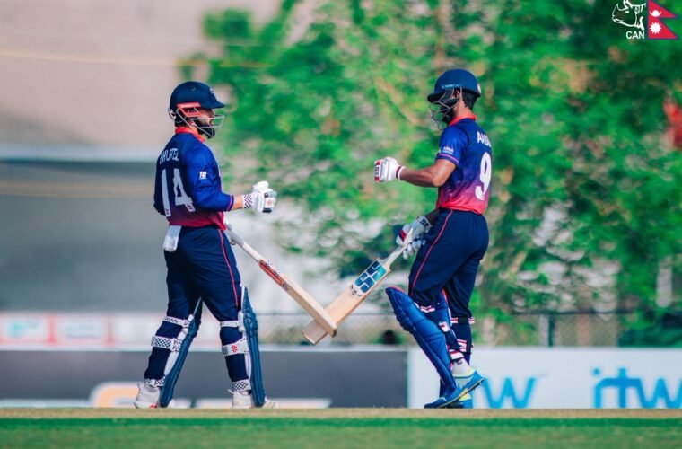 टस जितेर पहिले ब्याटिङमा उत्रिएको नेपालले निर्धारित २० ओभरमा ६ विकेटको क्षतिमा १ सय ४० रनमात्र बनाउन सक्यो । नेपालको लागि आसिफ शेखले अर्धसतक बनाए । उनले ४७ बलमा ४ चौका र एक छक्काको मद्दतमा ५१ रन बनाए । यसअघि कुशल भुर्तेल २८, कप्तान रोहित पौडेल २०, गुलसन झा १४ र कुशल मल्ल १० रन बनाउँदै आउट भए । यस्तै सोमपाल कामीले ६ र सन्दीप जोराले नटआउट ४ रन बनाए ।