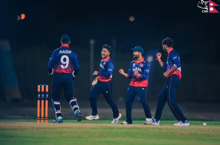 काठमाडौं । आईसीसी टी-२० विश्वकप एसिया एण्ड इस्ट एसिया प्यासिफिक छनोटको सुपर सिक्स अन्तर्गत भएको खेलमा नेपाल विजयी भएको छ । सोमबार राति भएको खेलमा कतारलाई पाँच रनले हराउँदै नेपालले विश्वकपमा छनोट हुने सम्भावनालाई बलियो बनाएको हो ।