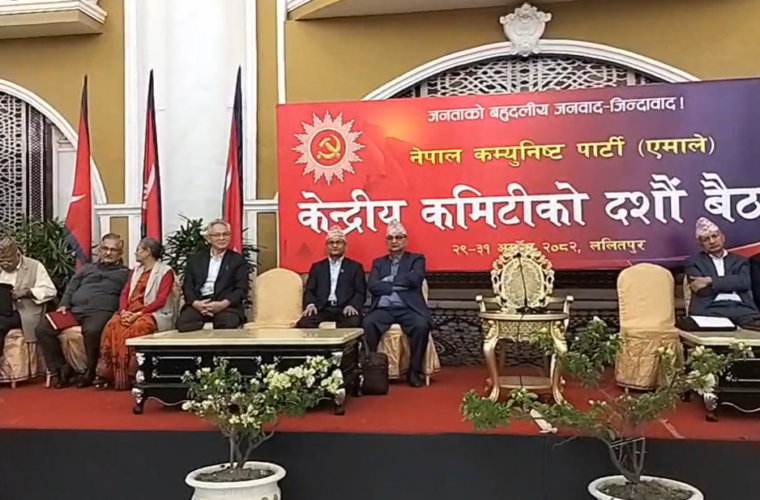 काठमाडौँ । नेपाल कम्युनिष्ट पार्टी (एमाले)को १०औँ केन्द्रीय कमिटी बैठकमा केन्द्रीय सदस्यले आ–आफ्नो धारणा राख्ने क्रम जारी छ । ललितपुरको जावालाखेलमा बसिररहेको बैठकको आज दोस्रो दिन पनि बुधबार पार्टी अध्यक्ष केपी शर्मा ओलीले प्रस्तुत गर्नुभएको राजनीतिक प्रतिवेदनमाथि केन्द्रीय सदस्यले धारणा राख्ने क्रम जारी रहेको हो ।