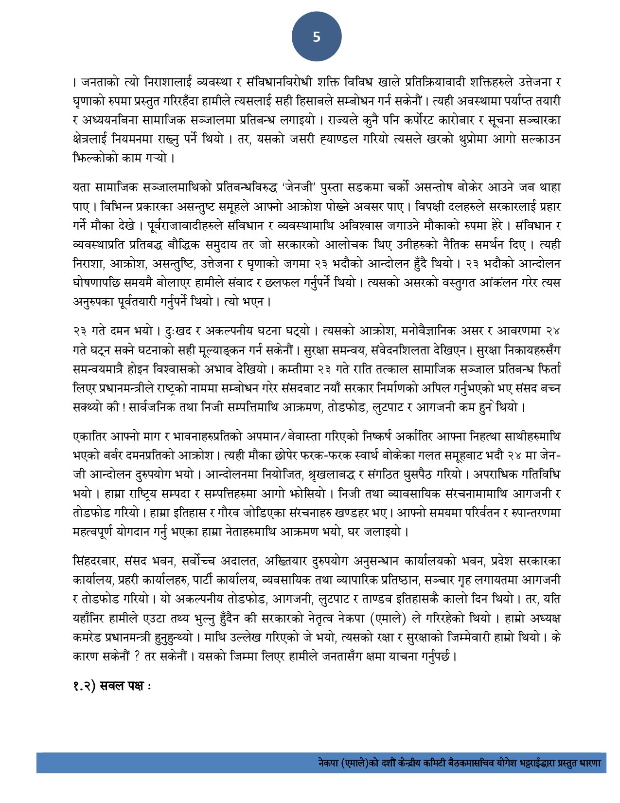 केन्द्रीय कमिटी बैठकलाई बिहीबार सम्बोधन गर्दै भट्टराईले अध्यक्ष ओलीले नै सहजतापूर्वक नेतृत्व हस्तान्तरणको प्रस्ताव अघि सार्नुपर्ने बताएका हुन् ।