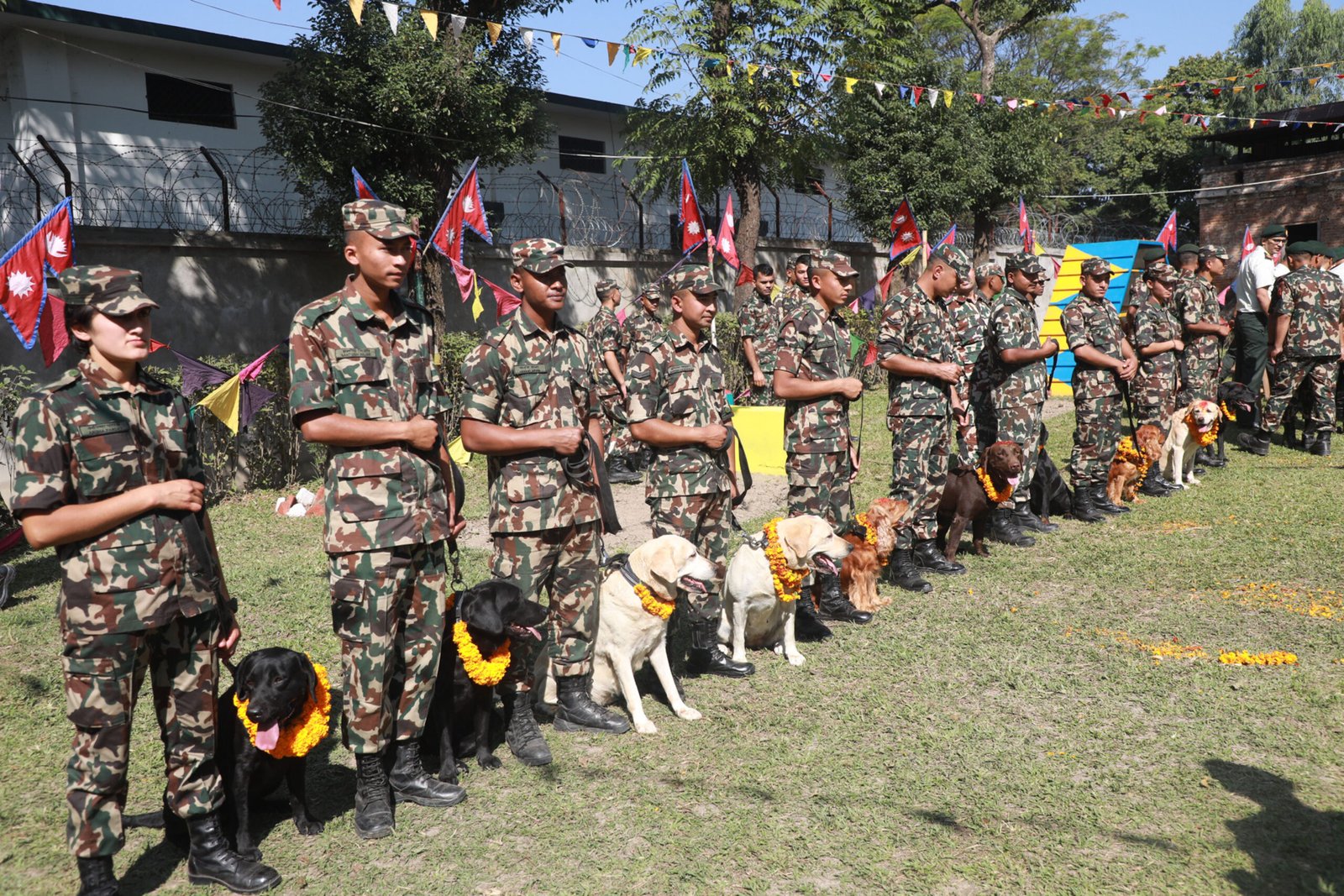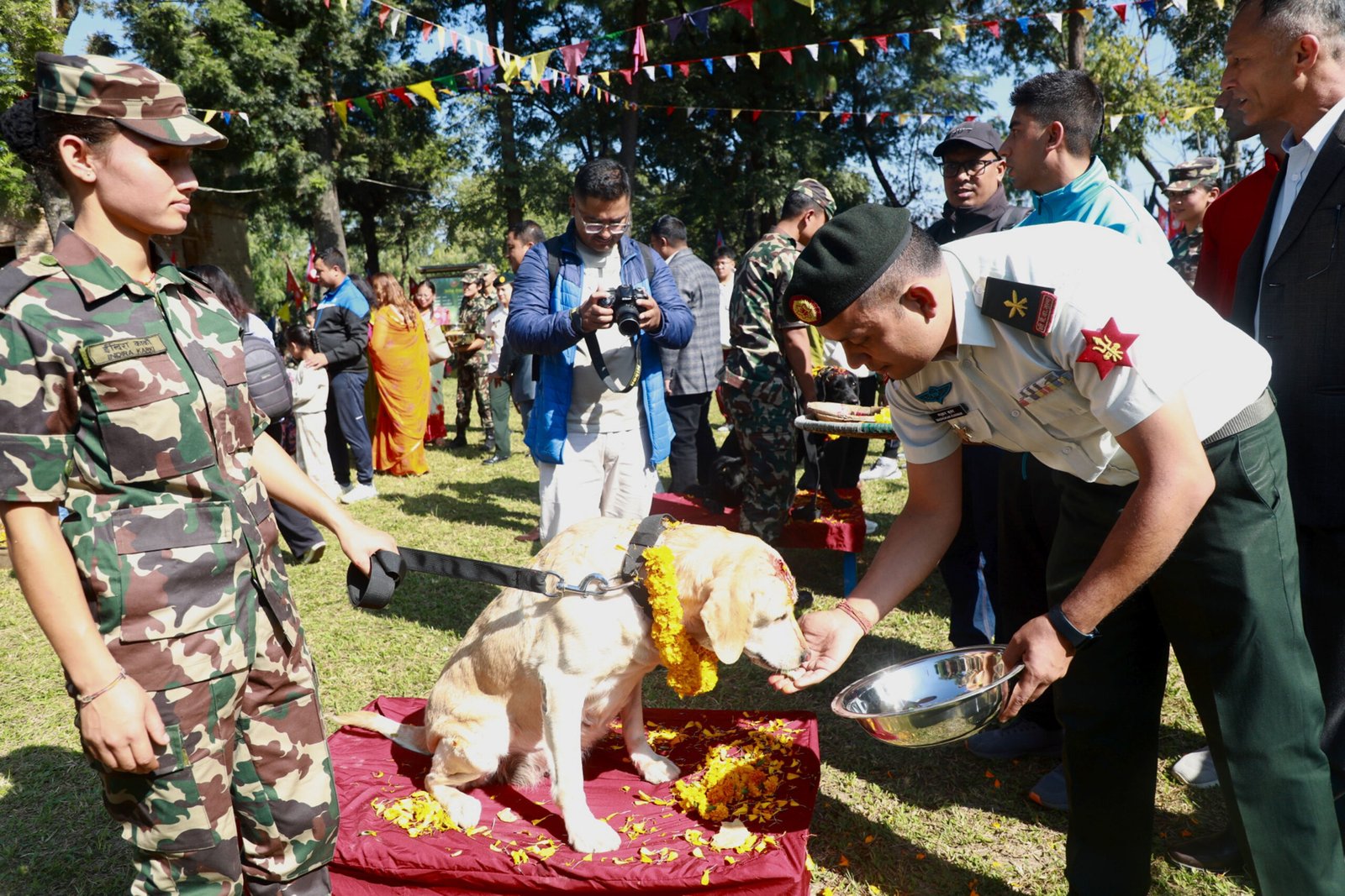 काठमाडौं। भक्तपुरको सानो ठिमीस्थित भैरव बाहन गुल्ममा सोमबार कुकुर तिहार मनाइएको छ । त्यस क्रममा सैनिक कुकुरहरूको पूजा तथा डग कला प्रदर्शन गरिएको थियो ।
