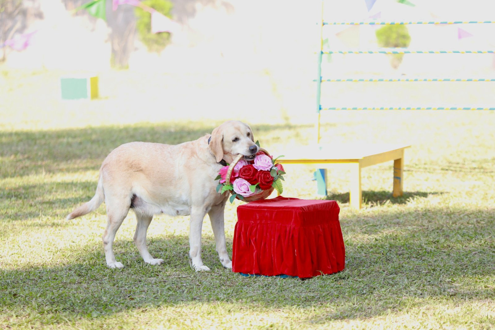 कुकुरको पूजाअघि तालिम प्राप्त कुकुरबाट कला प्रदर्शनका क्रममा उपस्थिति महानुभावलाई फूलको गुच्छाले स्वागत गरिएको थियो ।