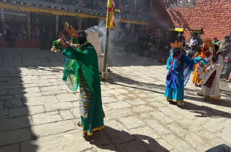 मुस्ताङ । विश्व शान्ति र स्थिरताको कामना गर्दै यहाँको घरपझोङ गाउँपालिका–५ ढुम्बास्थित कुछ्प तेरङ्गा गुम्बामा ‘ध्योक्योप’ पूजा र देव नृत्य प्रदर्शन गरिएको छ ।