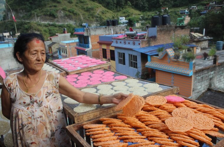 “पोखराबाट दुई लाखको झिनियाको माग आएको थियो,” उनले भने “राम्रोसँग घाम नलाग्दा पोखराको माग पुर्‍याउन सकिएन् । बेनीकै ग्राहकलाई बल्लतल्ल पुर्‍याएको छु ।” दसैँलगत्तै बेनीका उद्यमीले तिहारका लागि झिनिया बनाउन थालेका थिए । चामलको पिठो पकाएर त्यसलाई मेसिनमा पेलेर निस्कने चाउचाउको जस्तो त्यान्द्रोलाई दुई दिनसम्म घाममा सुकाएपछि झिनिया तयार हुन्छ ।