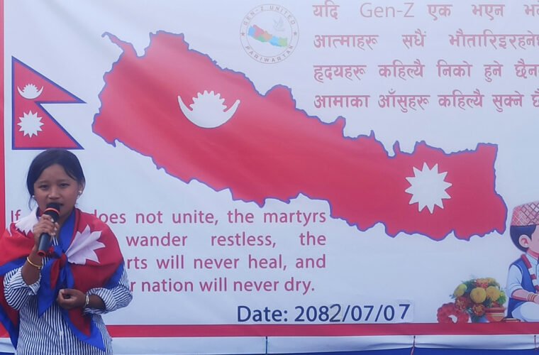 ‘जेनजी युनाइटेड–फर परिवर्तन’ संस्थाले आज माइतीघर मण्डलामा आयोजना गरेको खबरदारी सभामा सम्बोधन गर्दै अभियान्ताहरुले देशभरको जेनजीलाई एकताबद्ध बनाउन सरकारले नै पहल गर्नुपर्नेमा जोड दिए ।