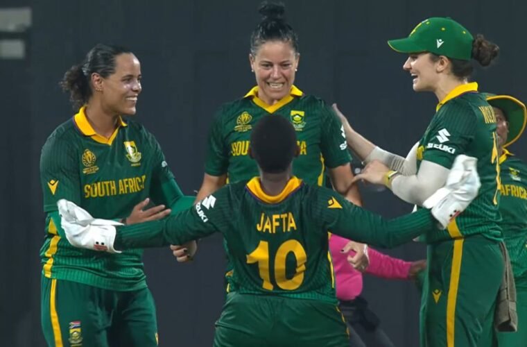 दक्षिण अफ्रिकाको लागि मारिजान्ने कापले पाँच, नदिने डे क्लेर्कले दुइ तथा अयाबान्गो खाका, नोंकुल्लेको म्लाबा र सुने लुसले समान एक/एक विकेट लिए ।