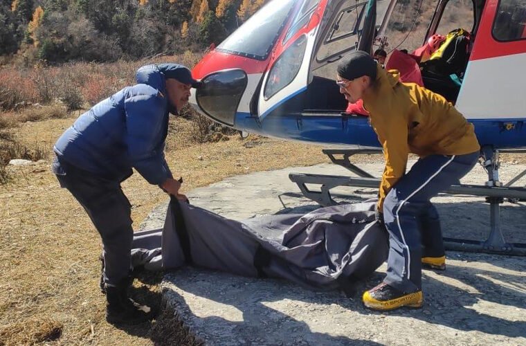 आरोहीको शव हेलिकोप्टरमार्फत सामागाउँ ल्याइएको छ । पाङबारीे हिमालबाट फर्कने क्रममा तीन इटालियन नागरिक र एक नेपाली सहयोगी गत बुधबारदेखि पहिलो शिविर र आधार शिविरमा अलपत्र परेका थिए । फरिनातो र गापुटो हिमाल आरोहण गर्न नसकेपछि फर्कने क्रममा हिमपातका कारण अलपत्र परेका बताइएको छ ।