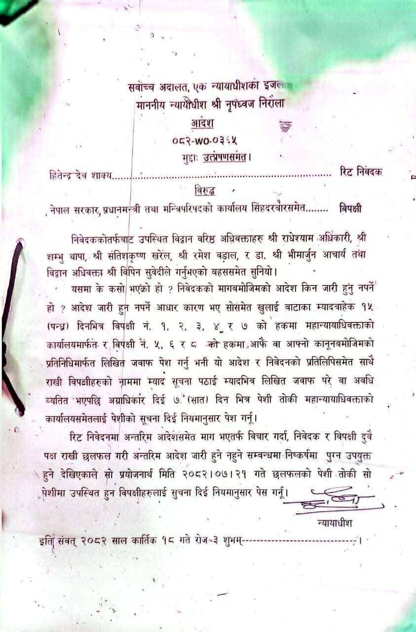 सर्वोच्चद्वारा हितेन्द्रको रिटमा अन्तरिम आदेश जारी गर्न अस्वीकार