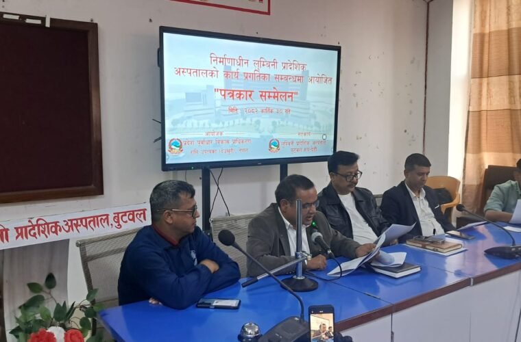 लुम्बिनी । लुम्बिनी प्रदेशको गौरव आयोजना मानिएको लुम्बिनी प्रादेशिक अस्पतालको अत्याधुनिक भवन निर्माण प्रगति सन्तोषजनक देखिएको छ । आयोजनाको हालसम्मको भौतिक प्रगति ३० प्रतिशत र वित्तीय प्रगति २६ दशमलव ६२ प्रतिशतको पुगेको छ ।