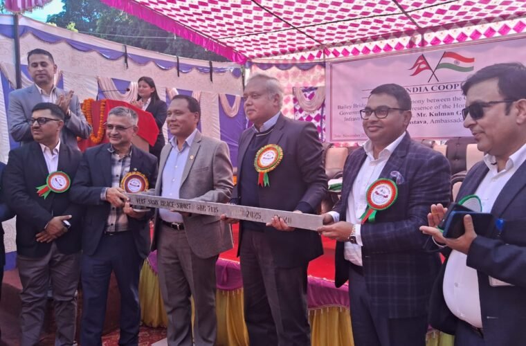 भारतले उपलब्ध गराउने १० वटामध्ये एउटा बेली ब्रिज बिहीबार नेपाललाई हस्तान्तरण गरिएको छ । बाँकी नौवटा बेली ब्रिज एक हप्ताभित्र नेपाल आइ पुग्नेछन् । नेपालका लागि भारतीय राजदूत नविन श्रीवास्तवले बिहीबार हेटौँडामा ऊर्जा जलस्रोत तथा सिँचाइ, भौतिक पूर्वाधार तथा यातायात र शहरी विकासमन्त्री कुलमान घिसिङलाई बेली ब्रिज हस्तान्तरण गरे ।
