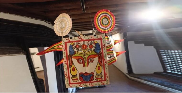 एउटै कपडामा समूहसमूहमा चित्र सिर्जना गरिएको छ । पहिले पनि समूहमा चित्र बनाउने चलन थियो, त्यसैले अहिले पनि त्यहीअनुसार प्रयोग गरिएको छ । नेवारी संस्कृति गाइजात्रामा प्रयोग हुने ‘सपारु’लाई यहाँ सुन्दररूपमा प्रदर्शन गरिएको छ । गाईजात्रा निकाल्दा गाईको साङ्केतिक रूपमा मुकुण्डो प्रयोग गरिन्छ, सोही देखाइएको अध्यापक शाहीले बताए ।