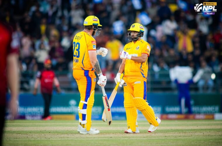 काठमाडौं । दोस्रो संस्करणको नेपाल प्रिमियर लिग(एनपीएल) अन्तर्गत जारी खेलमा सुदूरपश्चिम रोयल्सले पोखरा एभेन्जर्सलाई विशाल विजयी लक्ष्य प्रस्तुत गरेको छ । कीर्तिपुरस्थित टियु क्रिकेट मैदानमा जारी खेलमा सुदूरपश्चिमले पोखरालाई जितको लागि १ सय ९४ रनको विजयी लक्ष्य प्रस्तुत गरेको हो ।