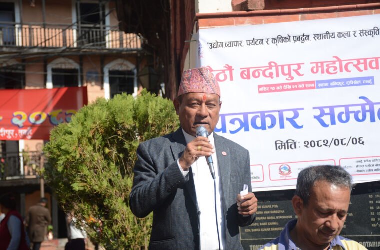 तनहुँ उद्योग वाणिज्य संघ बन्दीपुर बजार इकाइ समितिको आयोजनामा टुँडिखेलमा महोत्सव सञ्चालन हुनेछ। ‘उद्योग, व्यापार, पर्यटन र कृषिको प्रव्रद्धनः स्थानीय कला र संस्कृतिको संरक्षण’ भन्ने मूल नारासहित महोत्सव आयोजना गरिएको र तयारी अन्तिम चरणमा पुगेको महोत्सव संयोजक एवं इकाइ सभापति घनश्याम उपाध्यायले आज बन्दीपुरमा आयोजित पत्रकार सम्मेलनमा जानकारी दिए। बन्दीपुर नेपालकै पर्यटकीय गन्तव्यस्थल रहेकाले यसको थप प्रवर्द्धनमा महोत्सवले सहयोग पुग्ने उनले बताए।