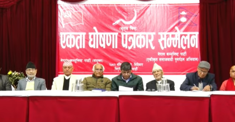 काठमाडौं । नेकपा एकीकृत समाजवादी पुनर्गठन अभियान र नेकपा (संयुक्त) बीच एकता भएको छ । बिहीबार पत्रकार सम्मेलन गरेर नेकपा एकीकृत समाजवादी पुनर्गठन अभियान र नेकपा संयुक्तबीच एकता घोषणा गरिएको हो ।