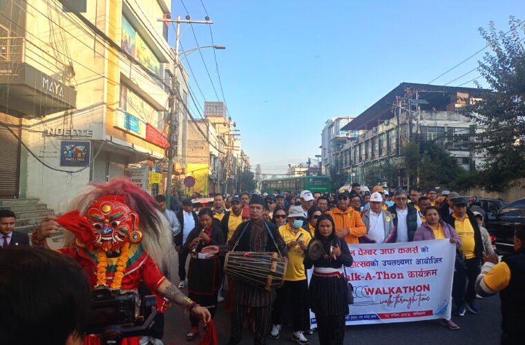 काठमाडौँ । नेपाल चेम्बर अफ कमर्शको ७५औँ हीरक जयन्तीका अवसरमा शनिबार जमलदेखि वसन्तपुरसम्म पदयात्रा निकालिएको छ ।