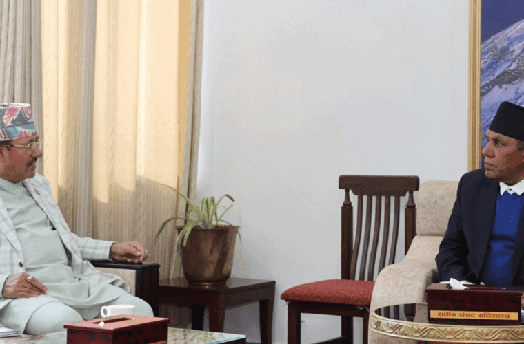 काठमाडौँ । निर्वाचन आयोगका कार्यवाहक प्रमुख निर्वाचन आयुक्त रामप्रसाद भण्डारीले राष्ट्रिय सभाका अध्यक्ष नारायणप्रसाद दाहालसँग भेट गरेका छन् ।