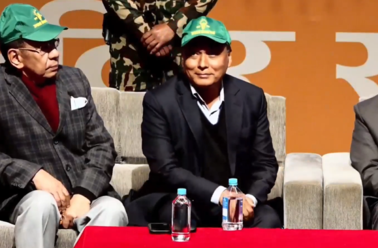 पार्टीको चुनाव चिह्न बलेको चिम रहेको छ । सभामा ऊर्जामन्त्री कुलमान घिसिङले प्रमुख अतिथिका रूपमा सम्बोधन गर्दैछन् ।