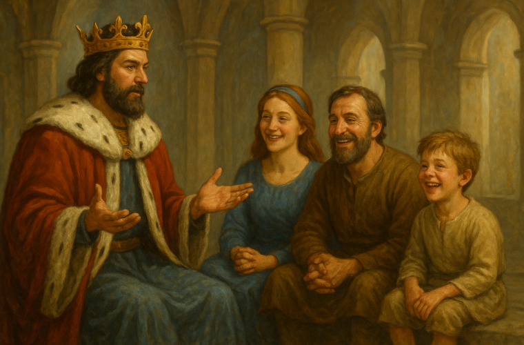 रानी आफ्नै दुनियाँमा हुन्थिन् । पूजापाठ र फूसवारीको रेखदेखमा उनको लगाव थियो । उनले एउटा सुगा पालेकी थिइन् । नयाँ कसैलाई देखे सुगा प्रश्न गथ्र्यो– किन आको ? आगन्तुक फिस्स हाँस्थे । रानी यदाकदा माथिबाटै जवाफ दिन्थिन्– तास खेल्न ! एकदिन पानी दर्किरहेको थियो । गाउँलेलाई कामको चापाचाप थियो । राजालाई खेल्ने सकसक लागिरह्यो । राजाका भित्रियामार्फत भद्रभलाद्मी कहाँ खबर पुग्यो । माठो माठो कोरम पुगि त गो । पानी दर्किएकाले सो दिन खाल बरण्डाबाट माथिको कोठामा सरेको थियो । सो कोठाबाट परैसम्म राजाको खेत छर्लङ्गै देखिन्थ्यो । साँझपख खेल बिट मार्दै गर्दा राजाले प्रश्न गरे– यो गाउँमा सबैभन्दा खुशी को ?