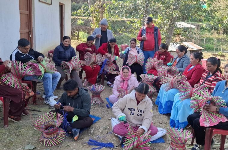 आफ्नै ठाउँमा व्यावसायिक बन्न मुढा बनाउने सीप सिक्दै दिक्तेलका महिला