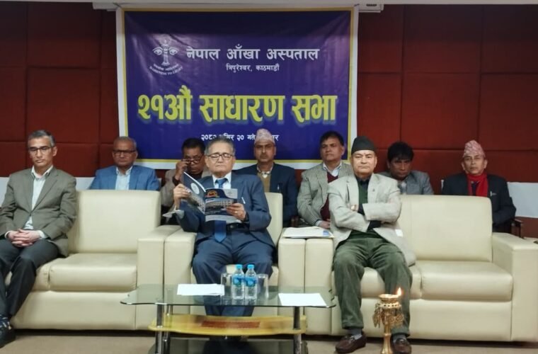काठमाडौँ । त्रिपुरेश्वरस्थित नेपाल आँखा अस्पतालले सेवालाई थप गुणस्तरीय बनाउँदै दूरदराजसम्म पु¥याउने प्रतिबद्धता जनाएको छ । आज यहाँ आयोजित अस्पतालको २१औँ वार्षिक साधारणसभा अस्पतालका अध्यक्ष डा गोपालप्रसाद पोखरेलले आँखा उपचारका क्षेत्रमा विकसित नयाँ प्रविधि भित्र्याउँदै गुणस्तरीय सेवा र भौतिक पूर्वाधार विकासमा उत्तिकै ध्यान दिइएको बताए ।