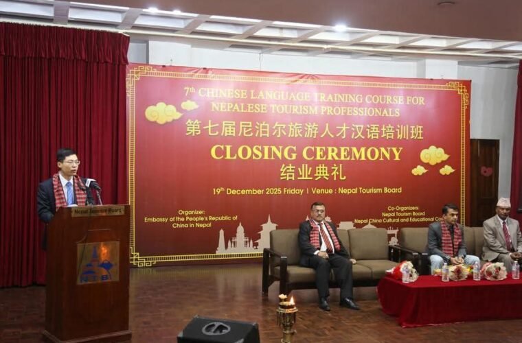 काठमाडौँ । नेपाल–चीन कूटनीतिक सम्बन्ध स्थापनाको ७०औँ वार्षिकोत्सवका सन्दर्भमा नेपाल पर्यटन बोर्ड र यहाँस्थित चिनियाँ राजदूतावासको सहयोगमा नेपालका पर्यटन व्यवसायीलाई चिनियाँ भाषा प्रशिक्षण दिइएको छ ।