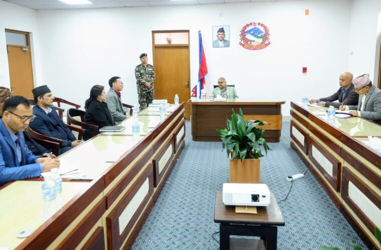 काठमाडौँ । प्रधानमन्त्री सुशीला कार्कीसँग नेपाल संगीत तथा नाट्य प्रज्ञा प्रतिष्ठानका पदाधिकारीहरूले बुधबार शिष्टाचार भेटवार्ता गरेका छन् । कुलपति निशा शर्मा, उपकुलपति शम्भु राईलगायतको टोलीले प्रधानमन्त्री कार्कीसँग प्रधानमन्त्री तथा मन्त्रिपरिषद्को कार्यालय, सिंहदरबारमा भेटवार्ता गरेको हो ।