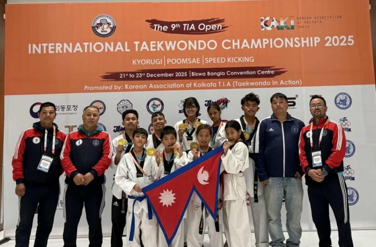 काठमाडौं । जैसीदेवल तेक्वान्दो डोजाङका खेलाडीले भारतको कोलकातामा भएको नवौँ खुला अन्तरराष्ट्रिय तेक्वान्दो प्रतियोगितामा ९ स्वर्ण, १ रजत र १ कास्य गरी ११ पदक जितेका छन्।