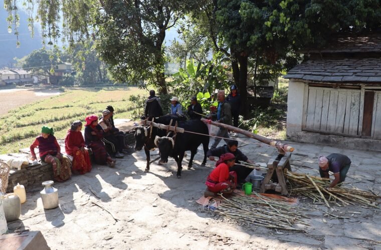 निरन्तर चल्दै छ कोलमा उखु पेल्ने चलन