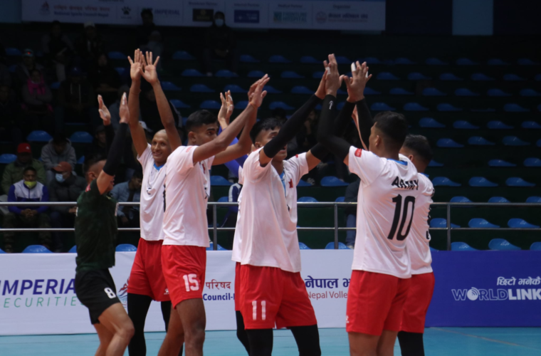 त्रिपुरेश्वरस्थित राष्ट्रिय खेलकुद परिषद्को कभर्डहलमा भएको समूह ‘डी’ को खेलमा आर्मीले कीर्तिपुर भलिबल ट्रेनिङ सेन्टरलाई ३–० को सोझो सेटमा पराजित गर्दै प्रतियोगिताको क्वाटर फाइनलमा प्रवेश गरेको हो ।