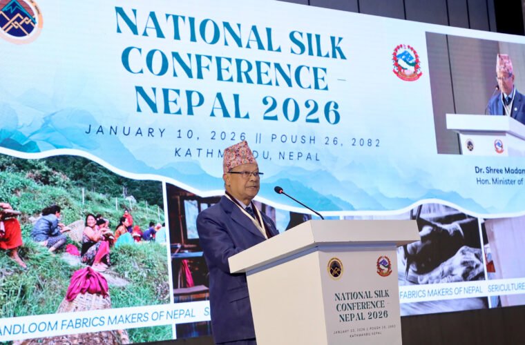 ह्याण्डलुम फ्याब्रिक्स मेकर्स अफ नेपाल र रेशम विकास केन्द्रको संयुक्त आयोजनामा आज यहाँ आयोजित राष्ट्रिय रेशम सम्मेलनमा उनले सीप तथा उद्यम विकासमा युवाको संलग्नता, आयत प्रतिस्थापन, निर्यात प्रवद्र्धन एवं जलवायु अनुकूलित हरित अर्थतन्त्रको प्रवद्र्धनमा पनि रेशमखेतीले योगदान दिनेमा विश्वास व्यक्त गरे ।