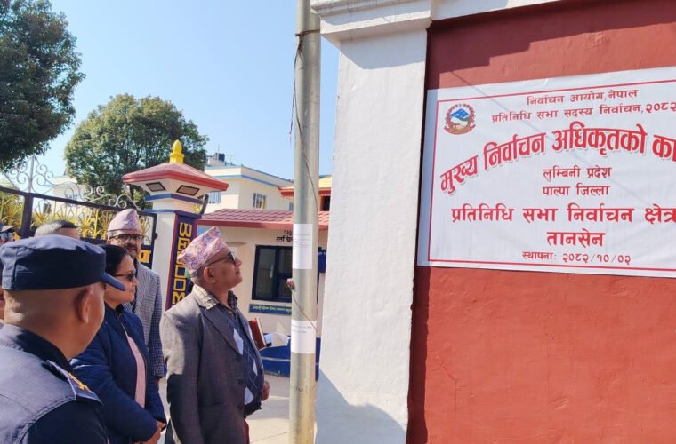 तानसेन(पाल्पा) । फागुन २१ हुने प्रतिनिधिसभा सदस्य निर्वाचनलाई सफलतापूर्वक सम्पन्न गर्न जिल्लामा मुख्य निर्वाचन अधिकृत र निर्वाचन अधिकृतको कार्यालय स्थापना भएसँगै यहाँ चुनावी चहलपहल सुरु भएको छ।
