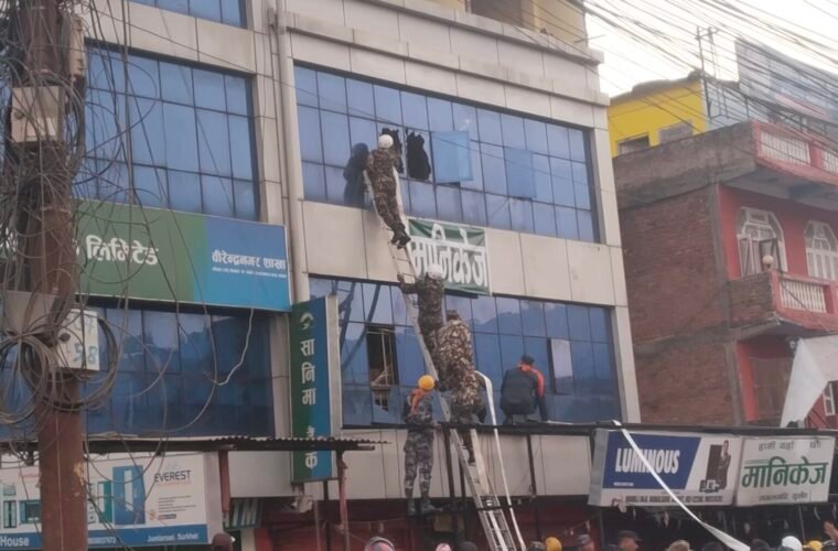 नेपाली सेनाका उपसेनानी मनोज कुँवर र नेपाल प्रहरीका प्रहरी निरीक्षक राजन भट्टराईको टोलीले भवनको भित्ता फोडेर चौथो तलाबाट बेहोस अवस्थामा रहेकी वृद्धाको उद्धार गरेको राजदल गण विमानस्थल सुर्खेतका प्रमुख सेनानी भद्रबहादुर सिंहले जानकारी दिए ।
