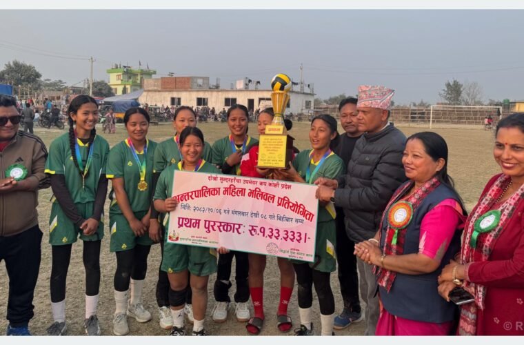 सुन्दरहरैँचा (मोरङ)। मोरङको सुन्दरहरैँचा नगरपालिकास्थित दोस्रो सुन्दरहरैँचा उपप्रमुख कप कोशी प्रदेश अन्तरपालिका महिला भलिबल प्रतियोगिताको उपाधि भोजपुरको आमचोक गाउँपालिकाले जितेको छ।