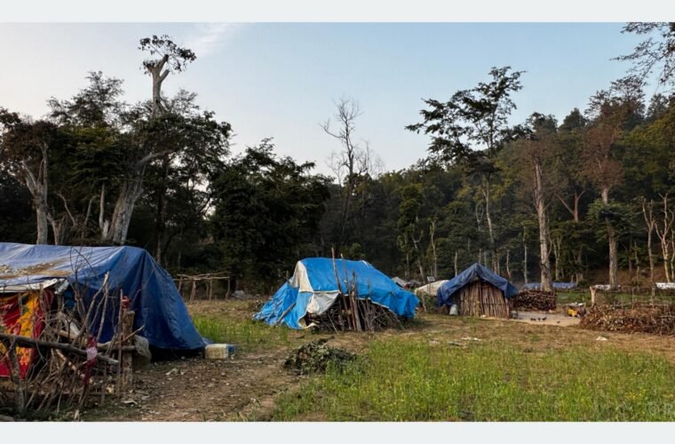 घोडाघोडी। कैलालीको चुरे गाउँपालिका-४ पनेरुगडास्थित जङ्गलको बीचमा विश्नादेवी महराको परिवार पाँच वर्षदेखि पालमुनी आश्रय लिएर बस्दै आएको छ। विसं २०७७ मा चुरे गाउँपालिका-४ को गौजनामा आएको पहिरोले उनको १६ रोपनी जमिनसहित घरखेत बगाएपछि पाँच जनाको परिवार विस्थापित भएको थियो।