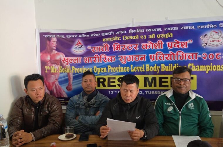 धरान । धरानमा सातौँ ‘मिस्टर कोशी प्रदेश–२०८२’ खुला शारीरिक सुगठन प्रतियोगिता आयोजना हुने भएको छ ।