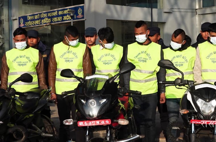 प्रहरीले काभ्रेपलाञ्चोकका २३ वर्षीय विनय, २० वर्षीय सलोन तामाङ, १८ वर्षीय राजीव भण्डारी र २९ वर्षीय पेमा तामाङ, सिन्धुलीका २४ वर्षीय आयन माझी र ३२ वर्षीय सविन माझी, मोरङका २३ वर्षीय मनिस रसाइली, रामेछापका २२ वर्षीय विशाल तामाङ, खोटाङका २८ वर्षीय विदुर विश्वकर्मा र सिन्धुपाल्चोकका २९ वर्षीय फुर्वा तामाङलाई पक्राउ गरेको हो । उनीहरुका साथबाट बा १२ च ७७०१ नंको कार र बागमती प्रदेश ०१०० ज ८७६६ नम्बरको ट्याक्सी तथा ६ थान मोटरसाइकल बरामद गरेको छ । उनीहरुलाई पक्राउ गर्न प्रहरीले बुधबार साँझ ६ देखि आज बिहान ३ बजेसम्म ‘अप्रेशन’ चलाएको थियो ।