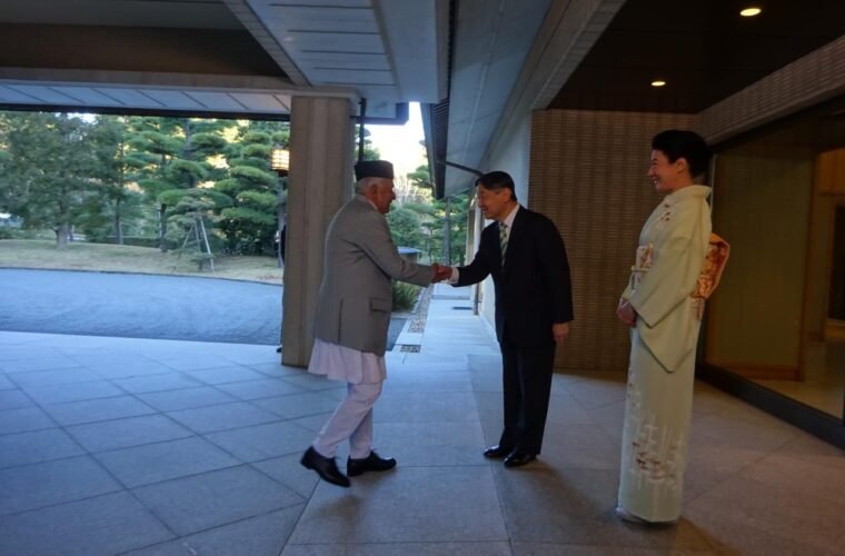 जापान ( टोकियो ) । राष्ट्रपति रामचन्द्र पौडेल र जापानका सम्राट नारुहितो बीच मंगलबार शीष्टाचार भेटवार्ता भएको छ । जापानको चारदिने भ्रमणमा रहेका राष्ट्रपति पौडेल र जापानका सम्राट नारुहितो बीच इम्पेरियल प्यालेस टोकियोमा शिष्टाचार भेटवार्ता भएको हो ।